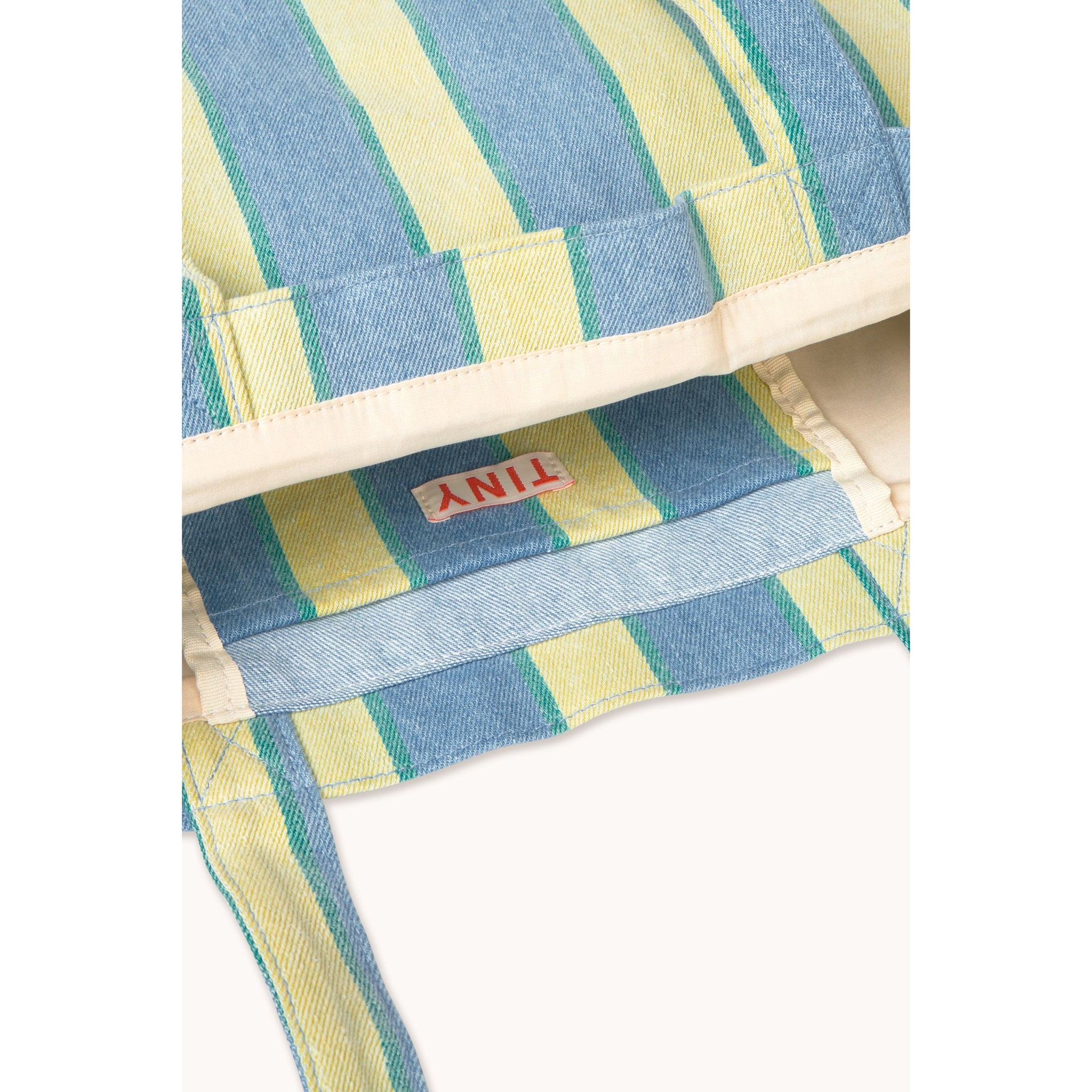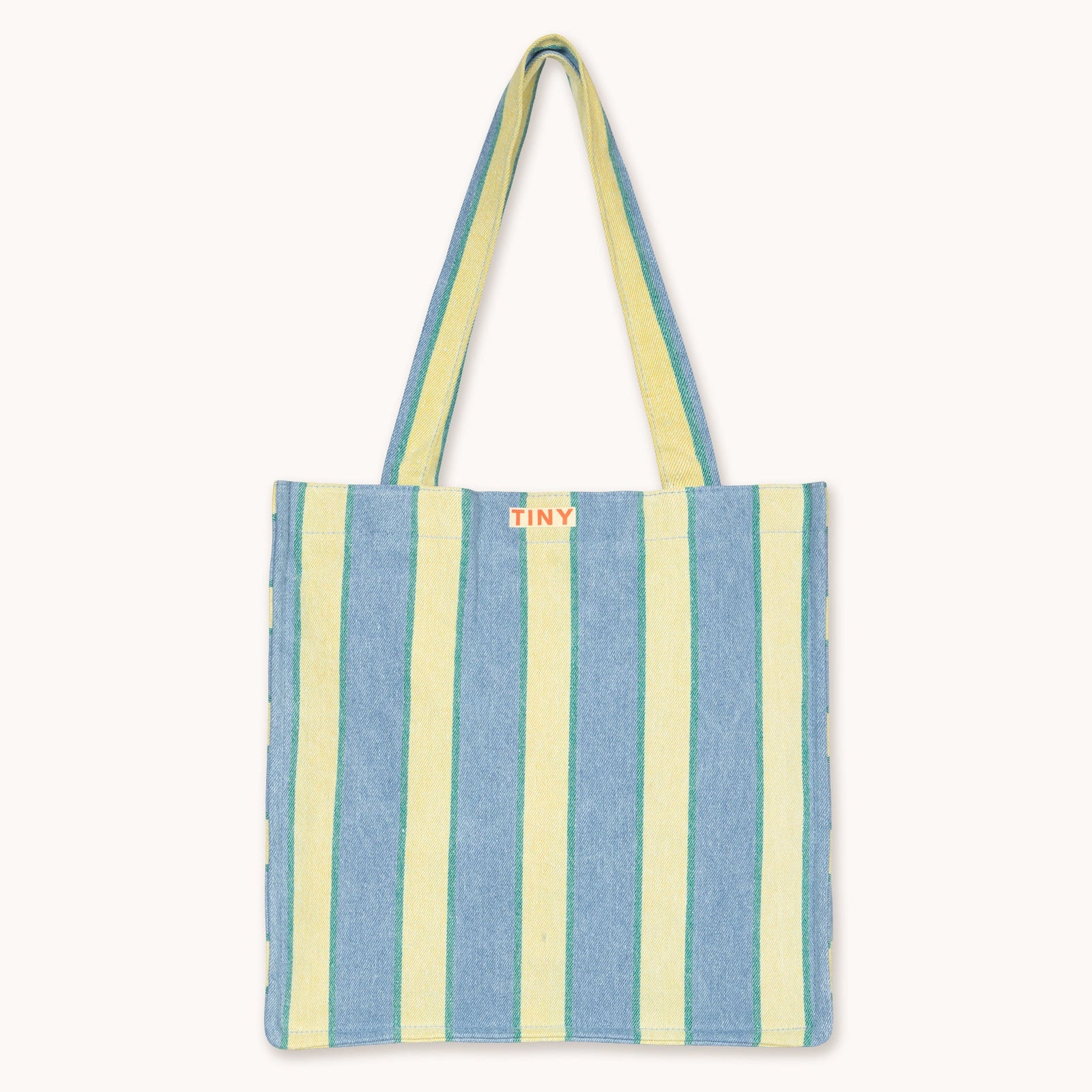 Tinycottons blue and pale yellow stripe denim tote bag from the new SS26 collection 'Giverny'