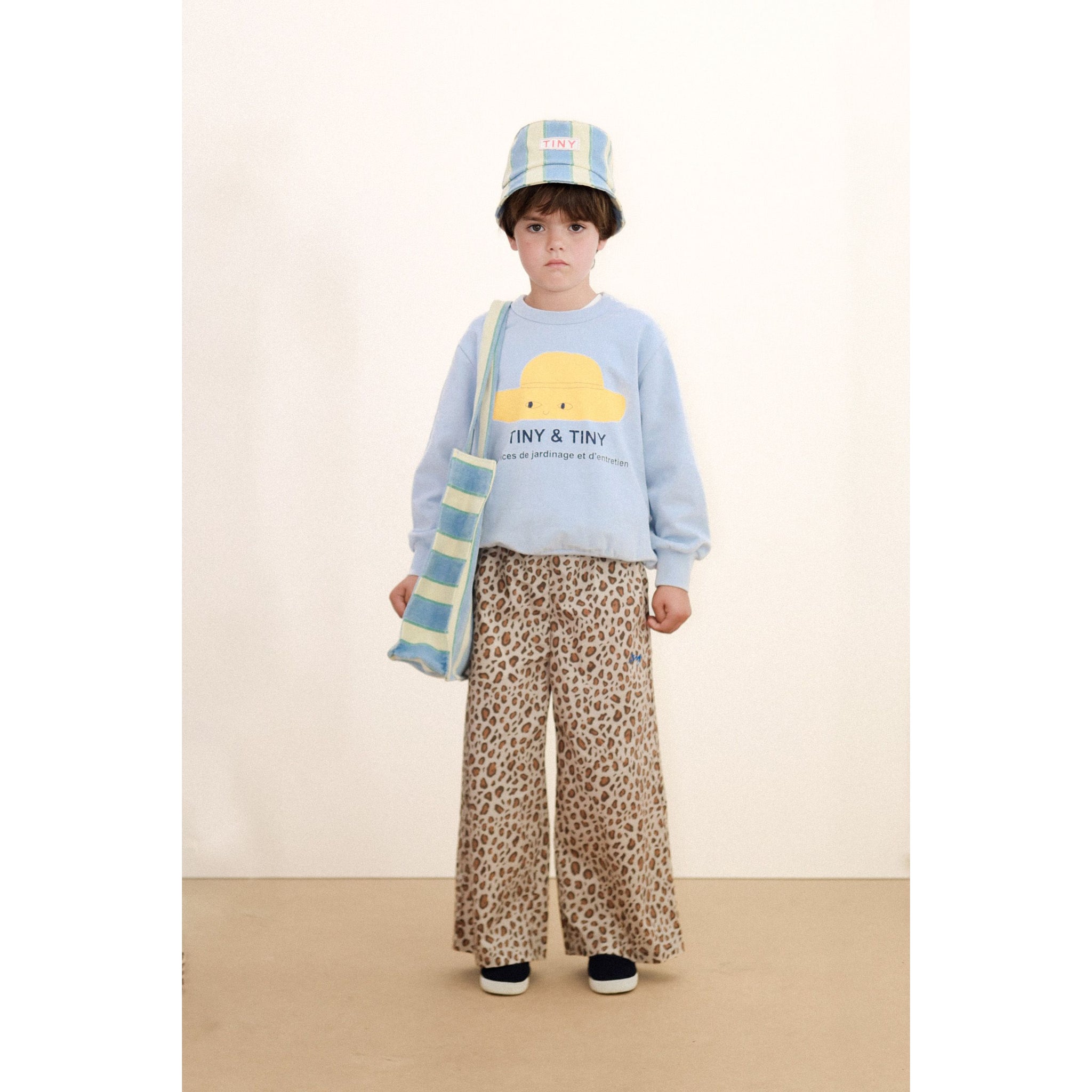 This everyday bag is perfect for carrying around your daily essentials and features a cool leopard print design and TINY logo at the top.