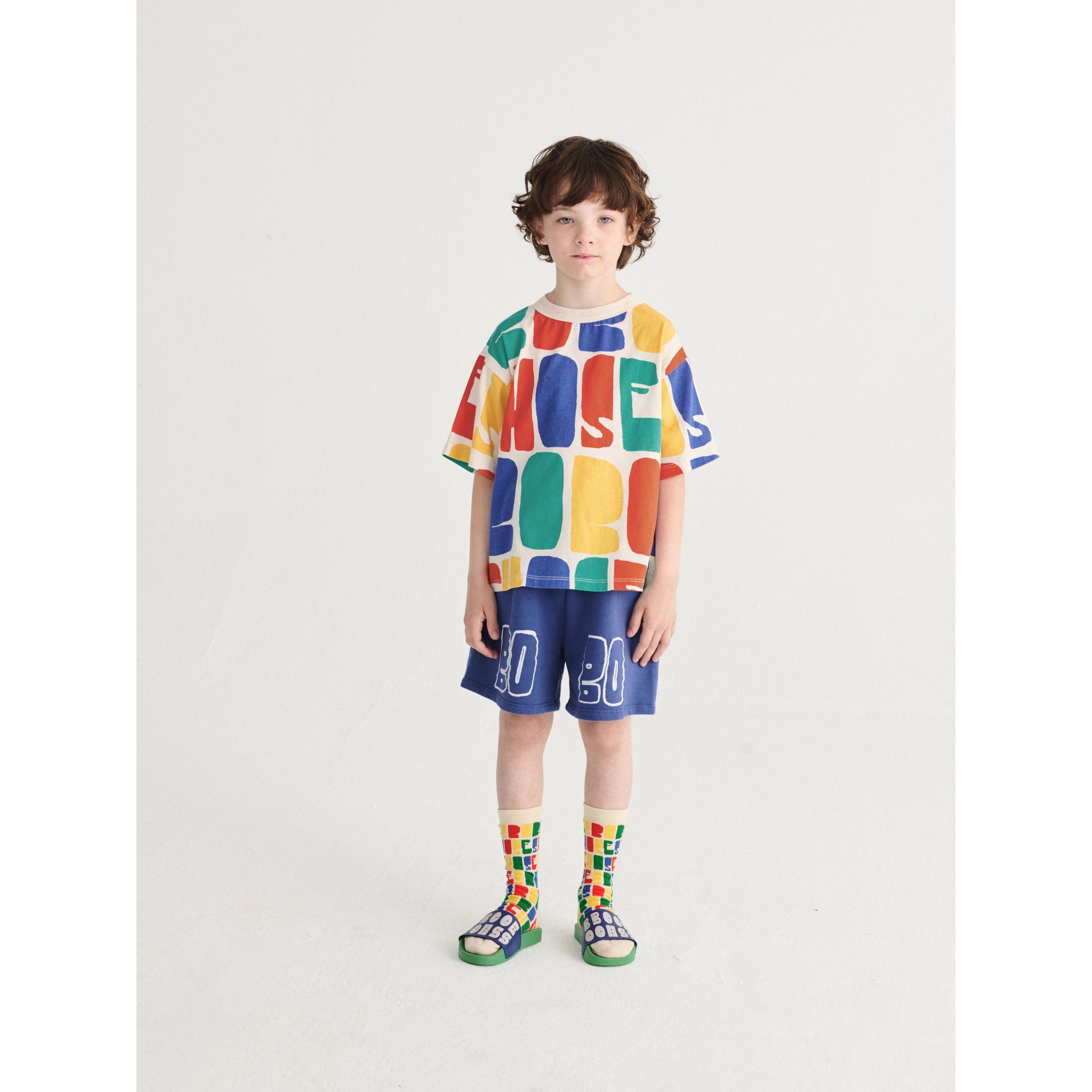This easy to wear t-shirt is designed with short sleeves, a round neck loose fit and dropped shoulder for a more relaxed fit. It features an all over Bobo print in red, yellow, blue and green.