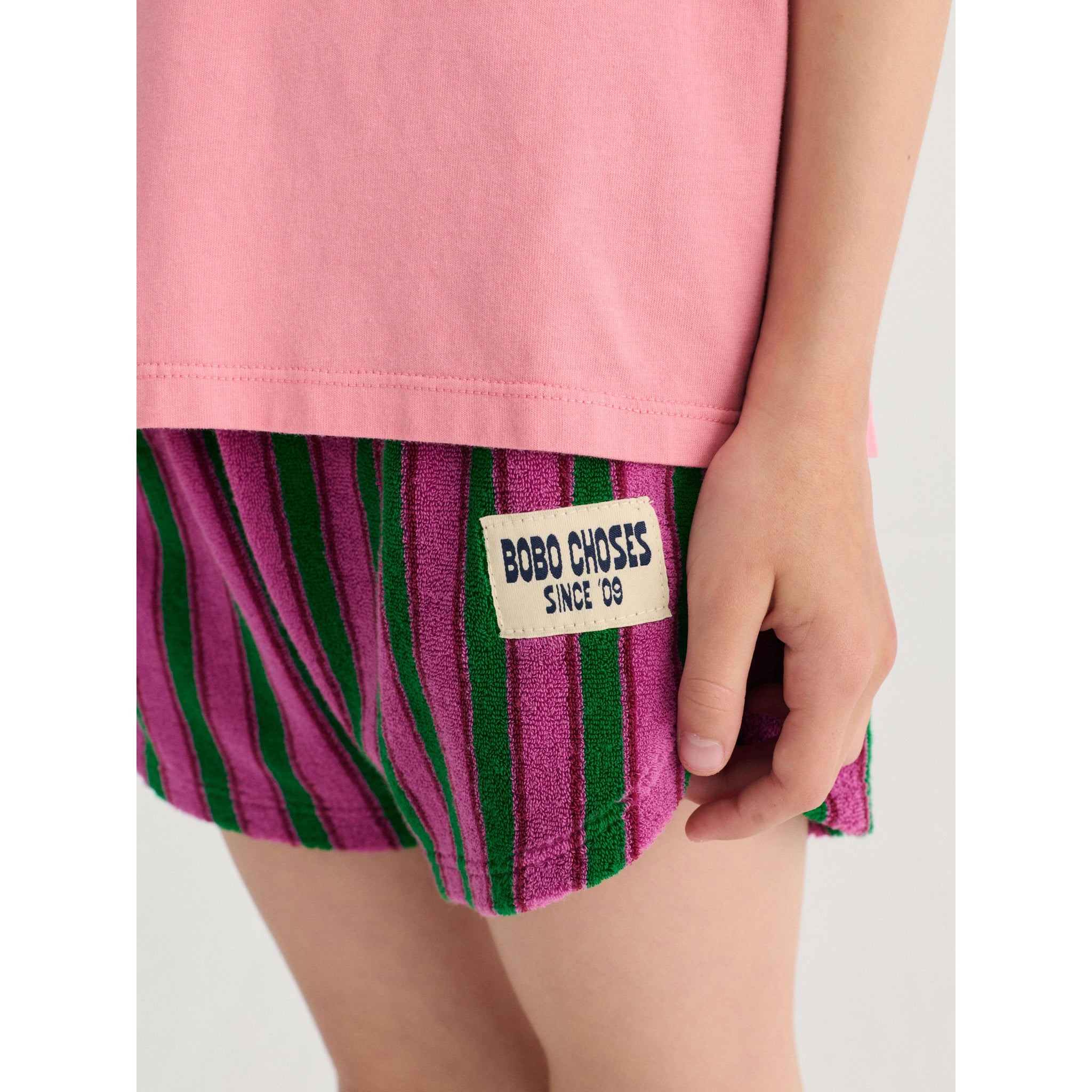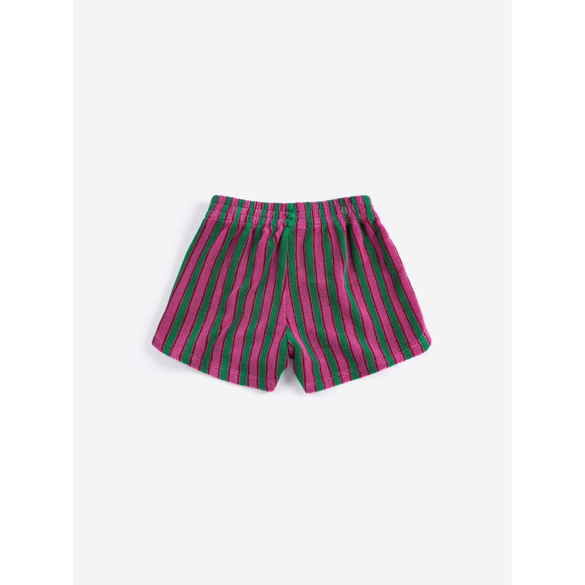 Bobo Choses purple and green stripe terry shorts from the new SS26 collection 'Pickles'