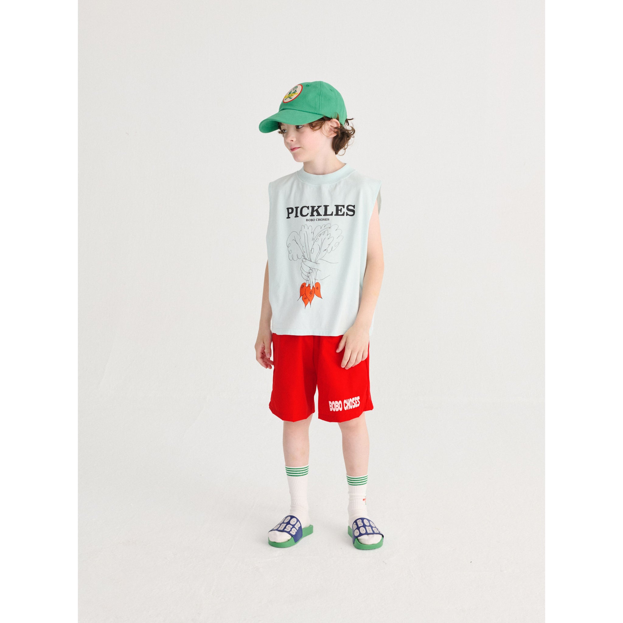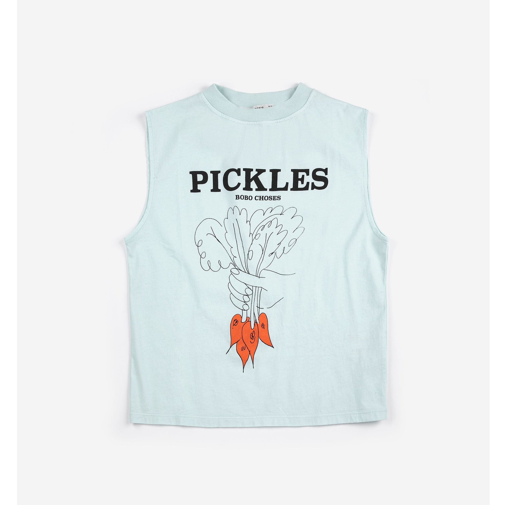 Bobo Choses pale blue sleeveless t-shirt with radish print  from the new SS26 collection 'Pickles'