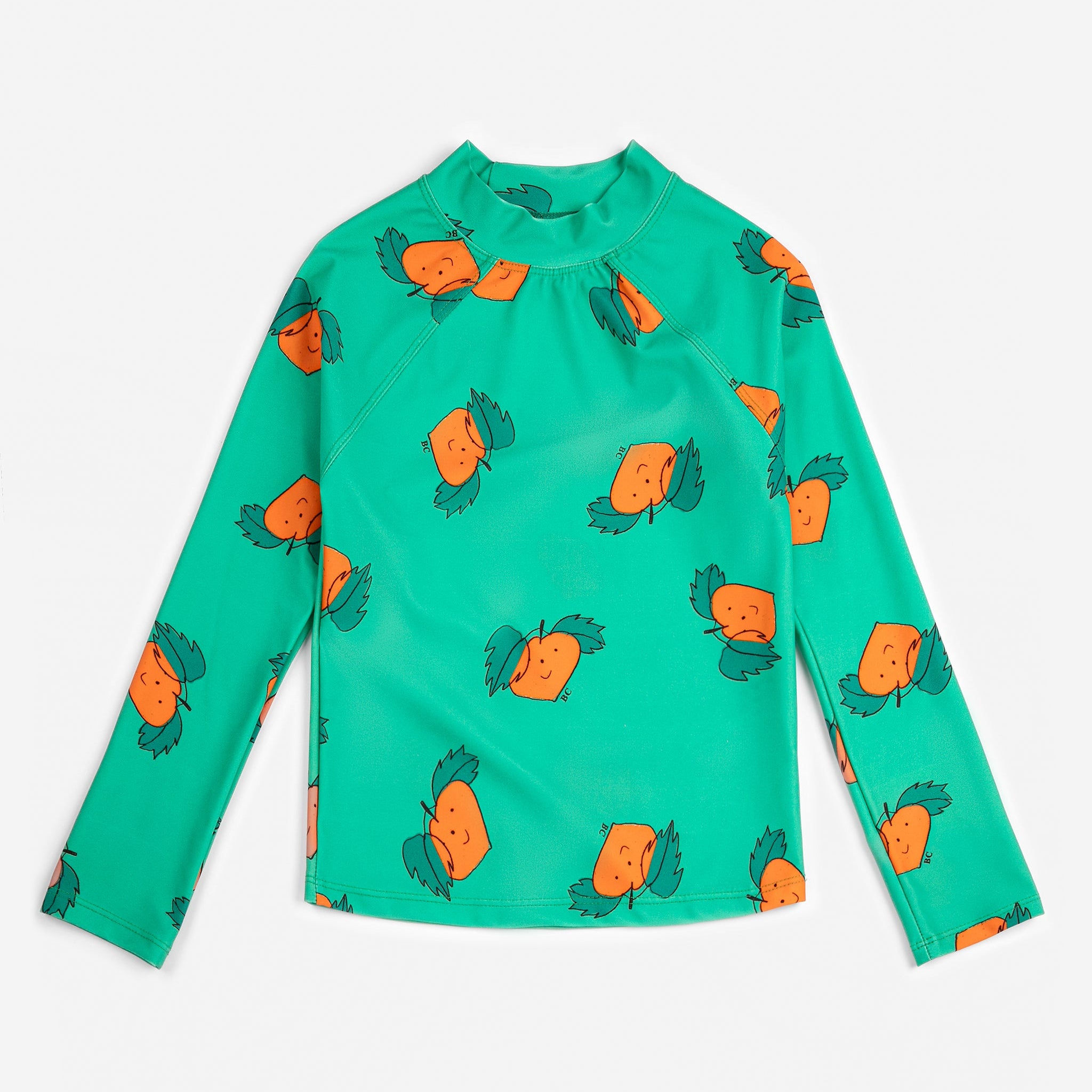 Bobo Choses green swim top with all over turnip print in orange from the new SS26 collection 'Pickles'