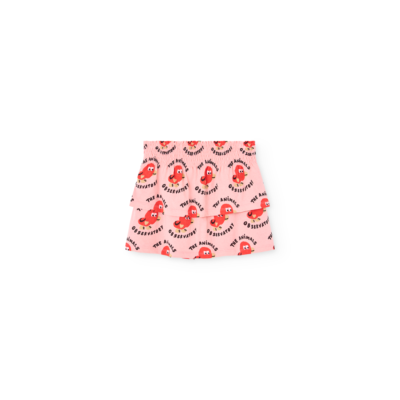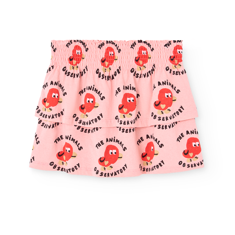 The Animals Observatory pink skort with all over red bird logo print from the new Spring/Summer 26 collection.