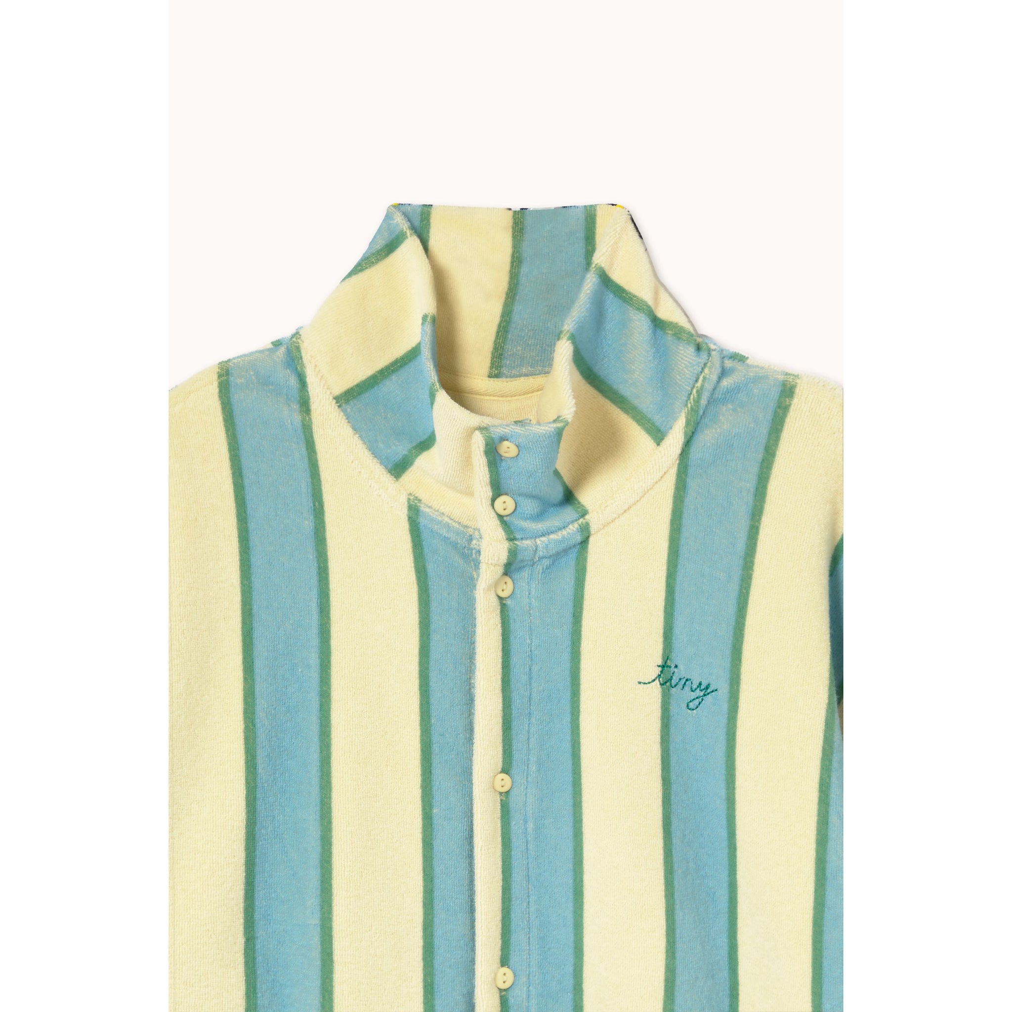 Tinycottons pale yellow and blue horizontal stripe mockneck sweatshirt from the new SS26 collection 'Giverny'