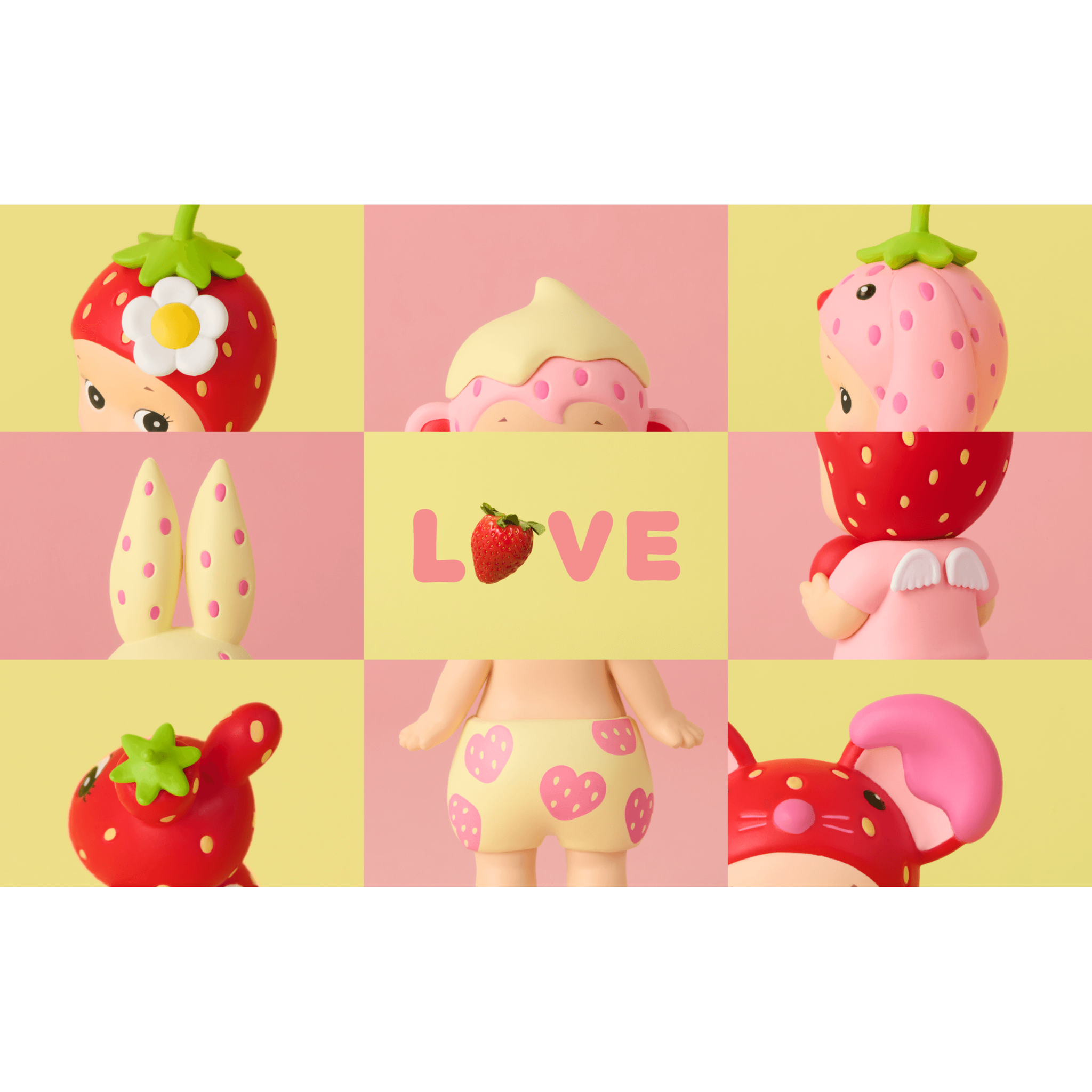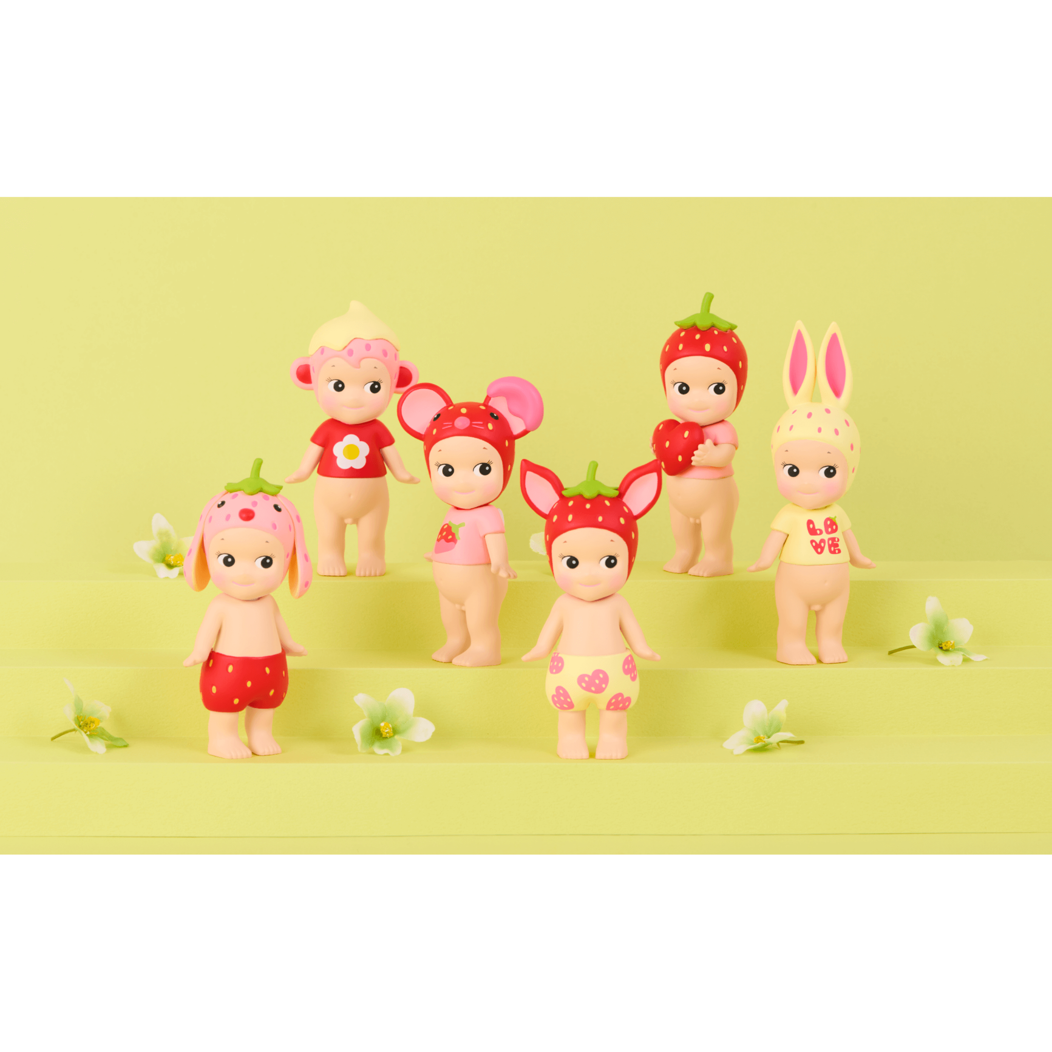 This collection brings a new juicy theme all based on one of our most appetising fruits, the strawberry. It contains 6 different types including rabbit, lop ear rabbit, mouse, monkey, fawn and strawberry, plus 2 secret figures - strawberry jam and strawberry Robby.
