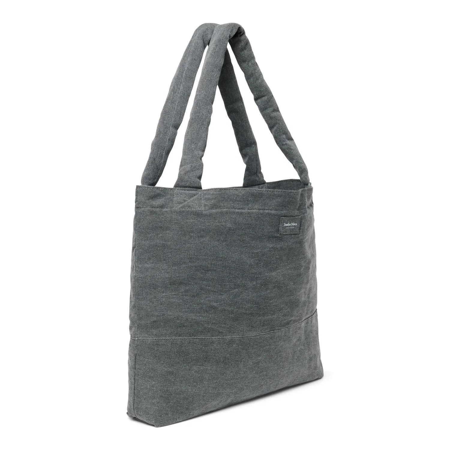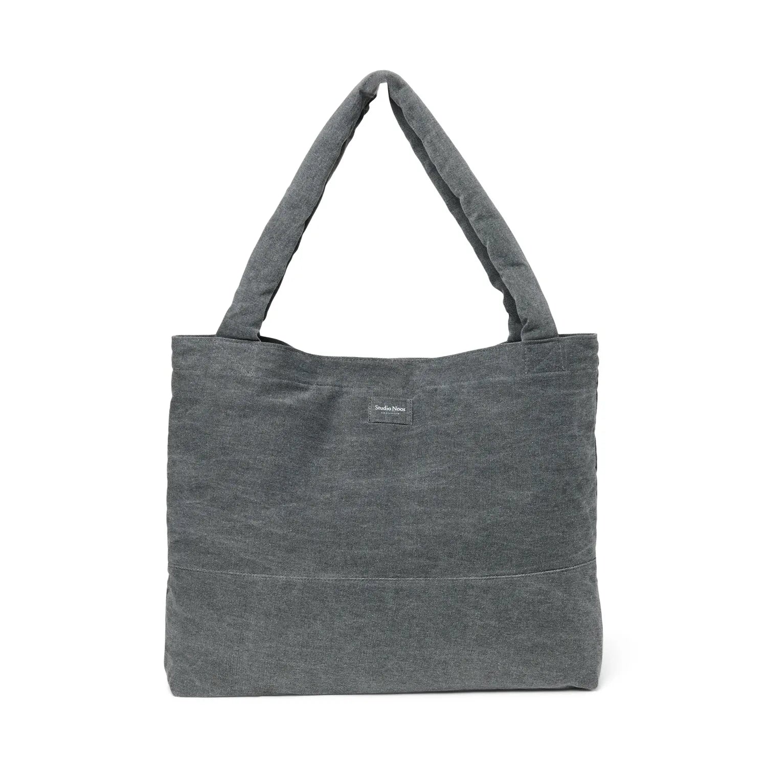 Soft cotton mom bag in stylish washed grey denim by Studio Noos.