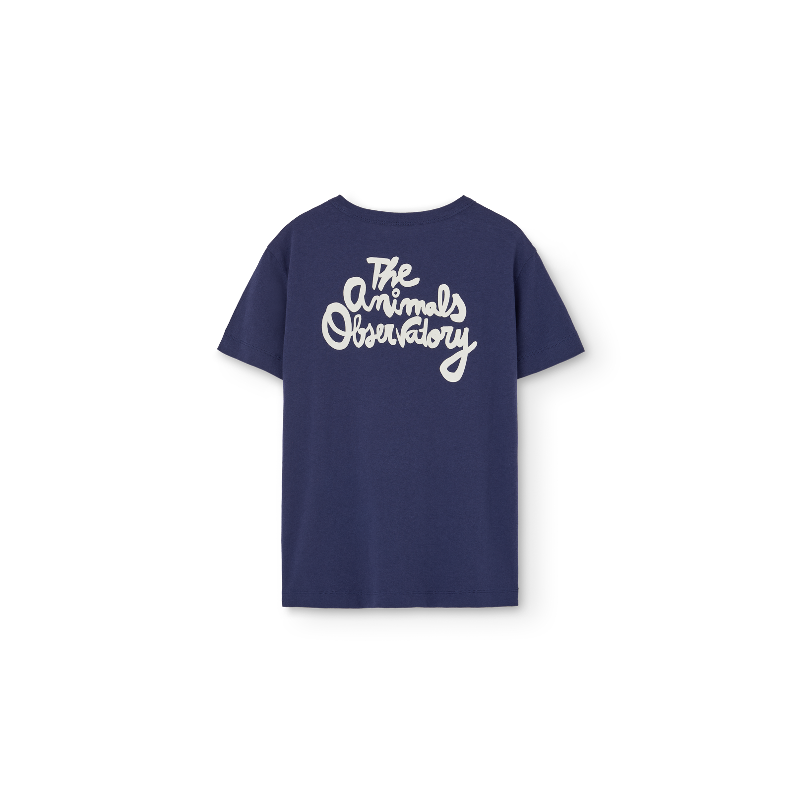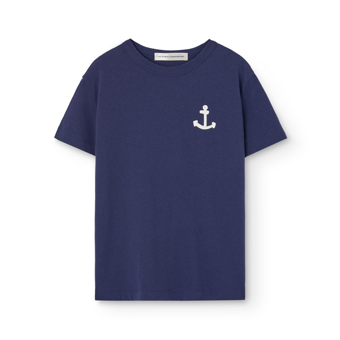 The Animals Observatory navy blue t-shirt with white anchor print on the front and white logo print on the back from the new SS26 collection.