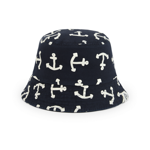 The Animals Observatory navy blue bucket hat with all over white anchor print from the new Spring/Summer 26 collection.