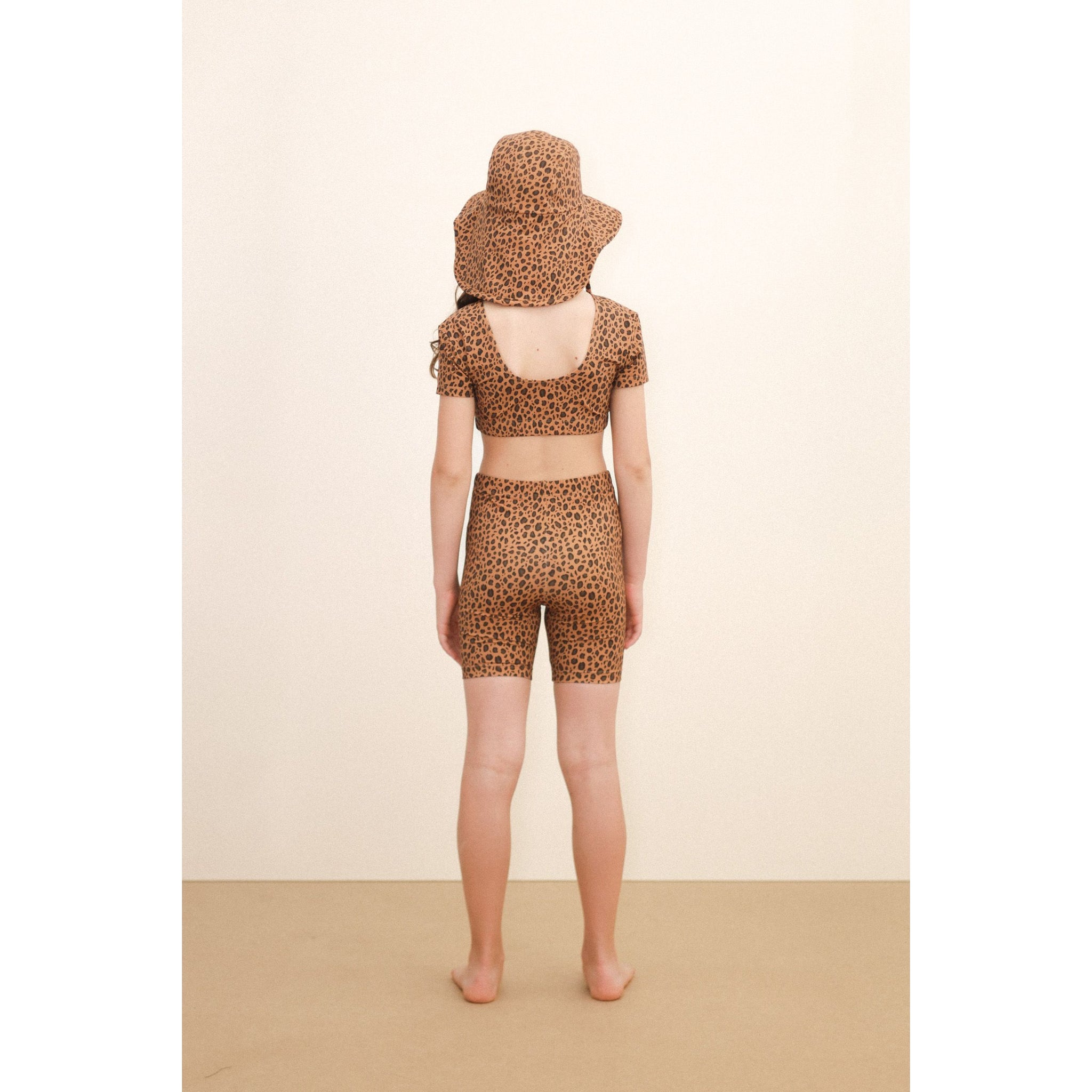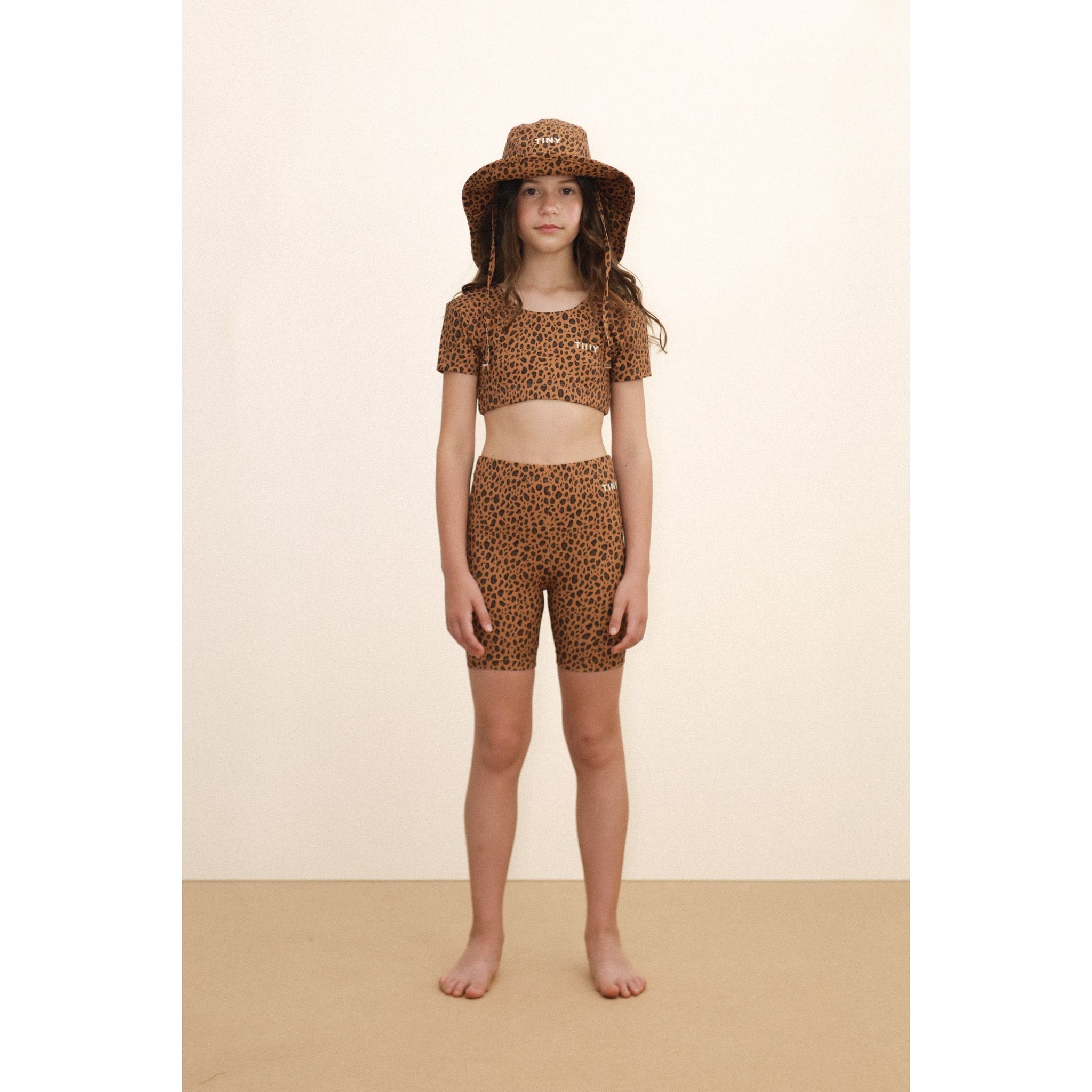 Tinycottons brown animal print bike shorts from the new SS26 collection 'Giverny'