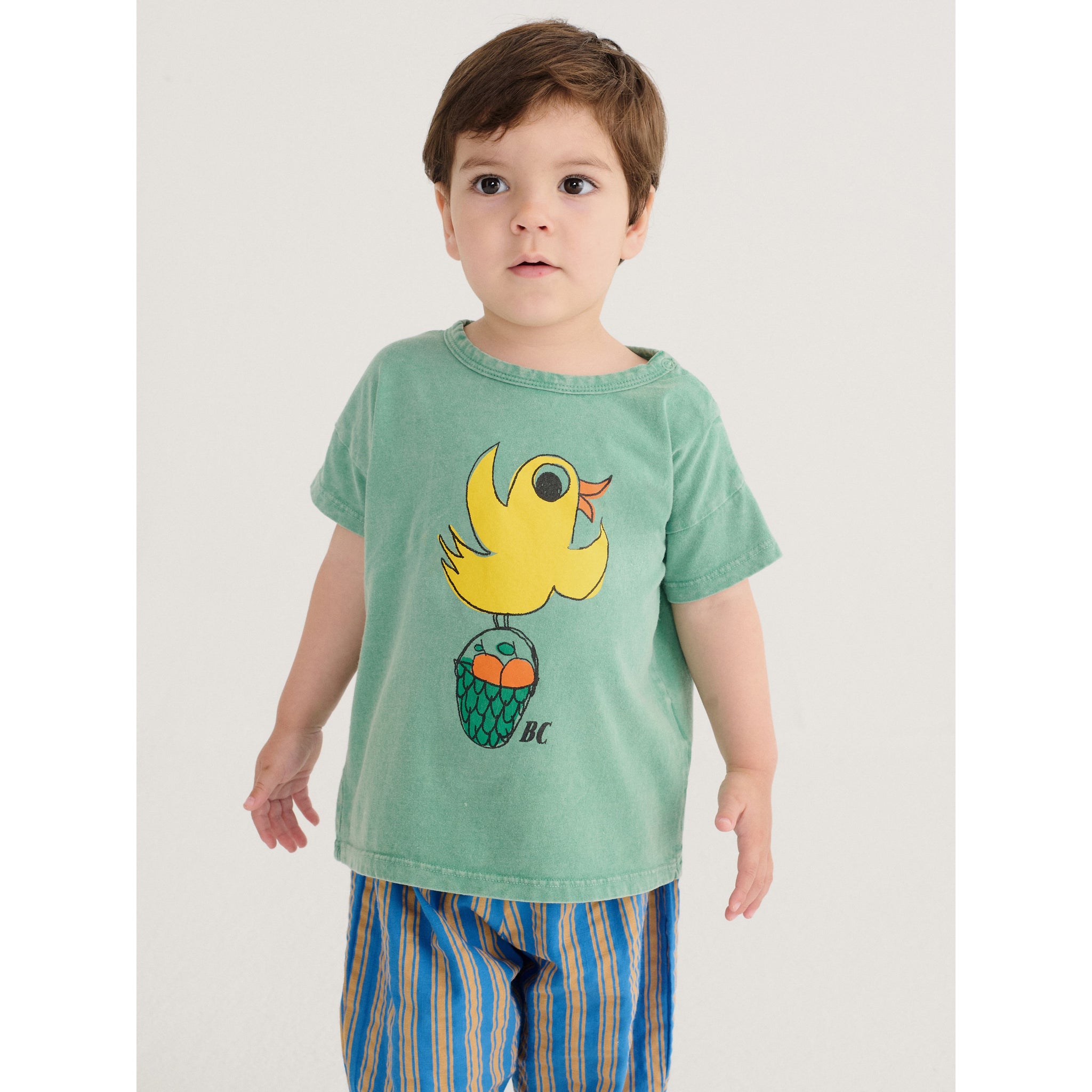 Bobo Choses washed green baby t-shirt with yellow bird and oranges print from the new SS26 collection 'Pickles'