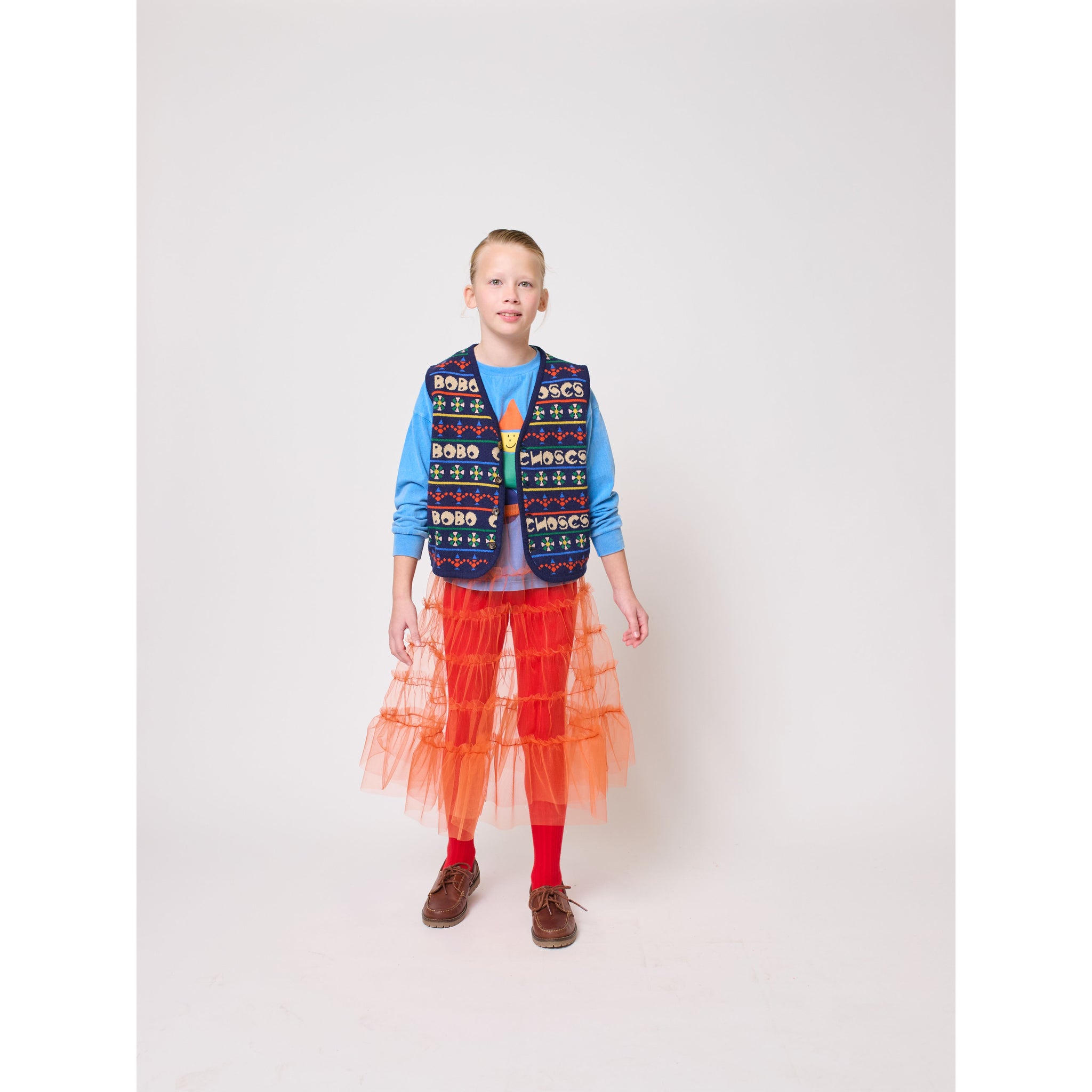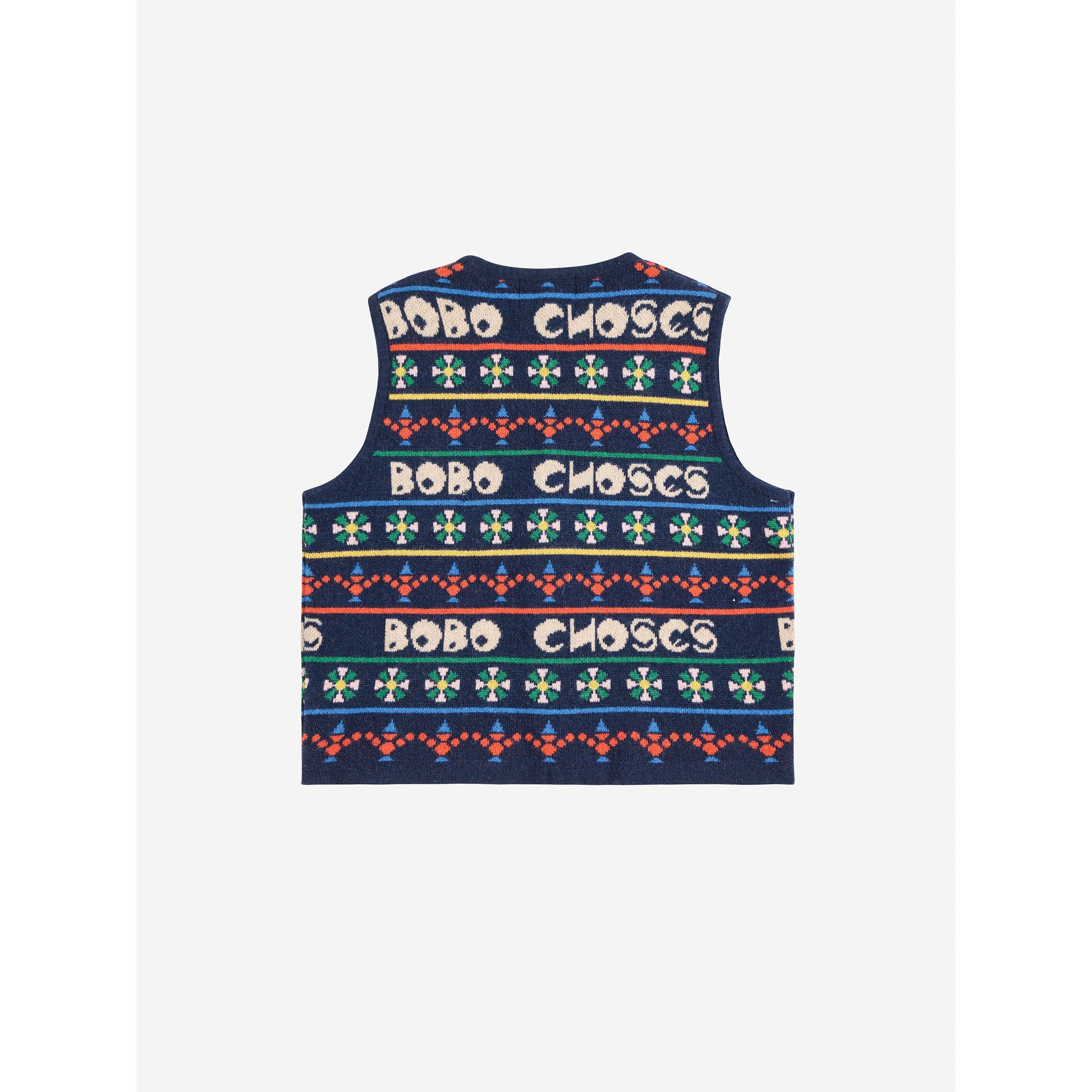 Bobo Choses navy, knitted vest with all over toy design from the new AW25 'Fun' capsule collection.
