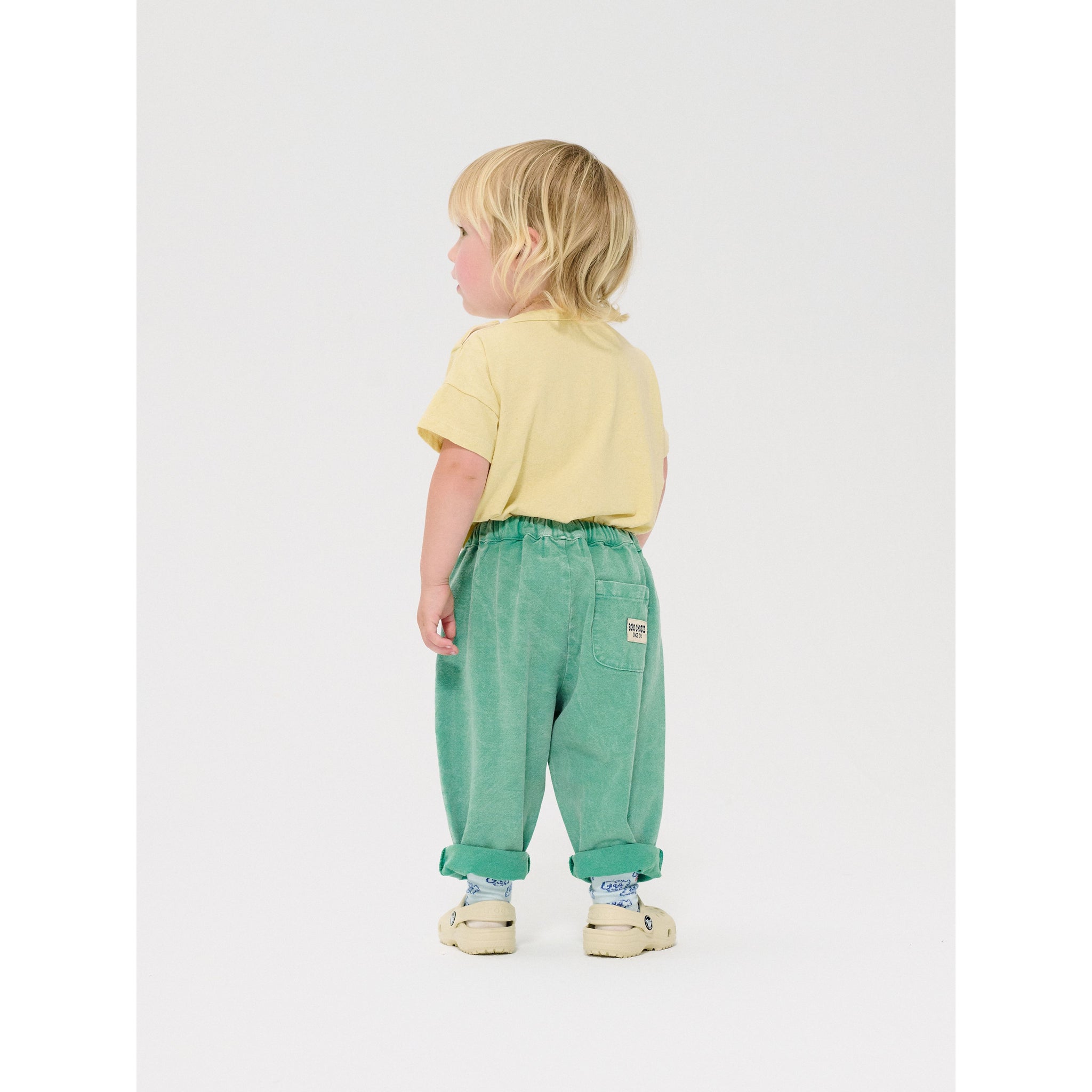 These comfortable and versatile ankle length baby pants are designed with a baggy fit, elasticated waist and patch pocket on the back.