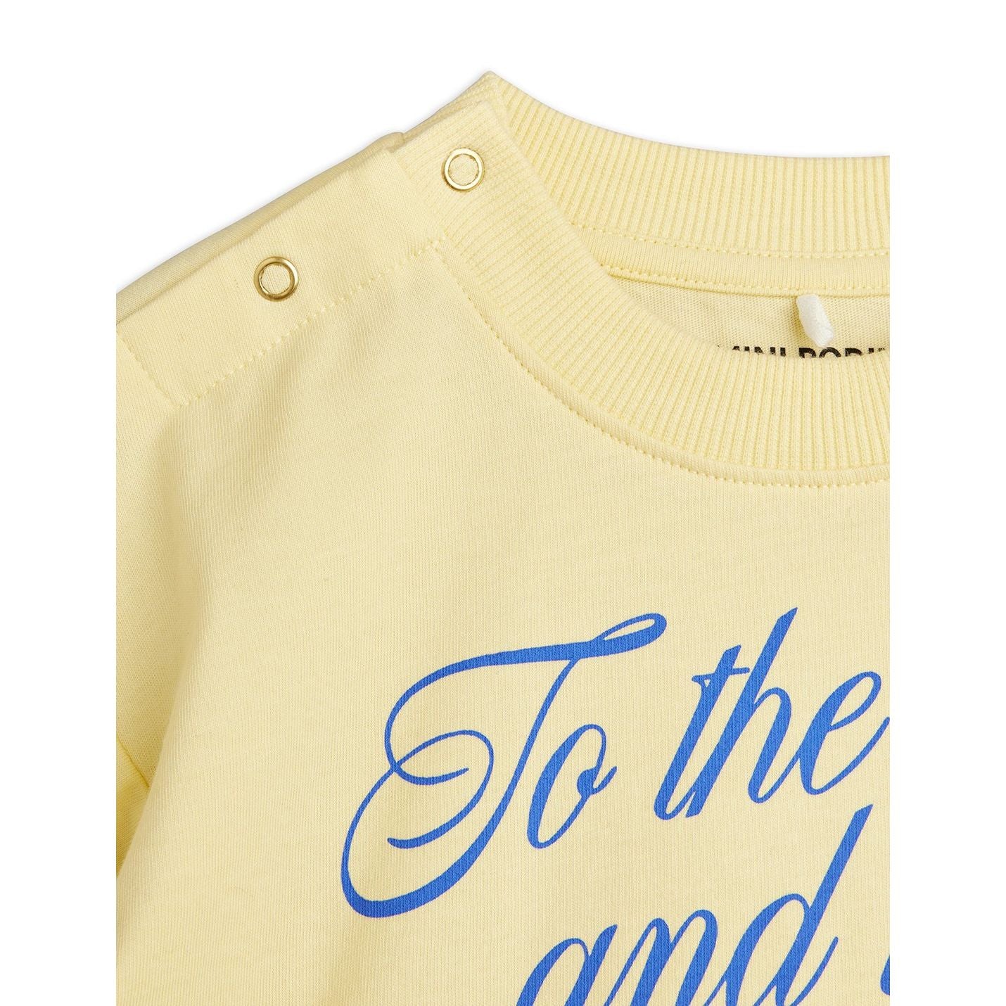 This cute Summer baby set consists of a pale yellow t-shirt with 'To the Moon and Back' print in blue and blue bike shorts. The t-shirt is designed with snap fastenings at the shoulder for easy dressing and the shorts have a soft, elasticated waistband.