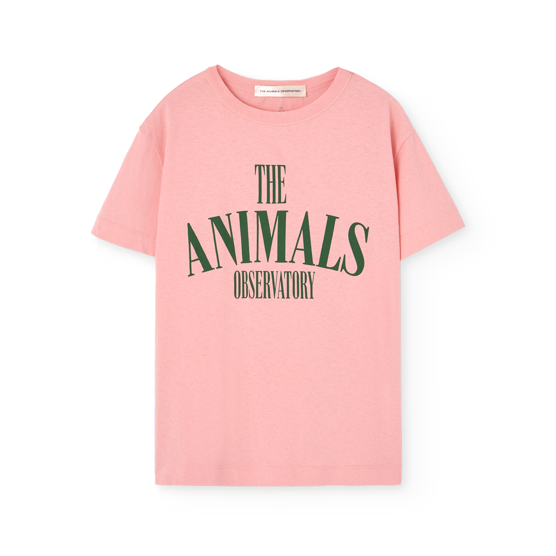 The Animals Observatory pink t-shirt with green logo print from the new SS26 collection.