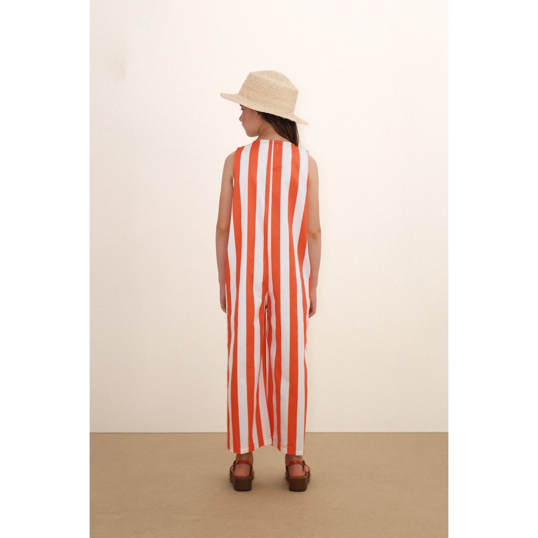 Tinycottons summer red and white stripe sleeveless jumpsuit from the new SS26 collection 'Giverny'