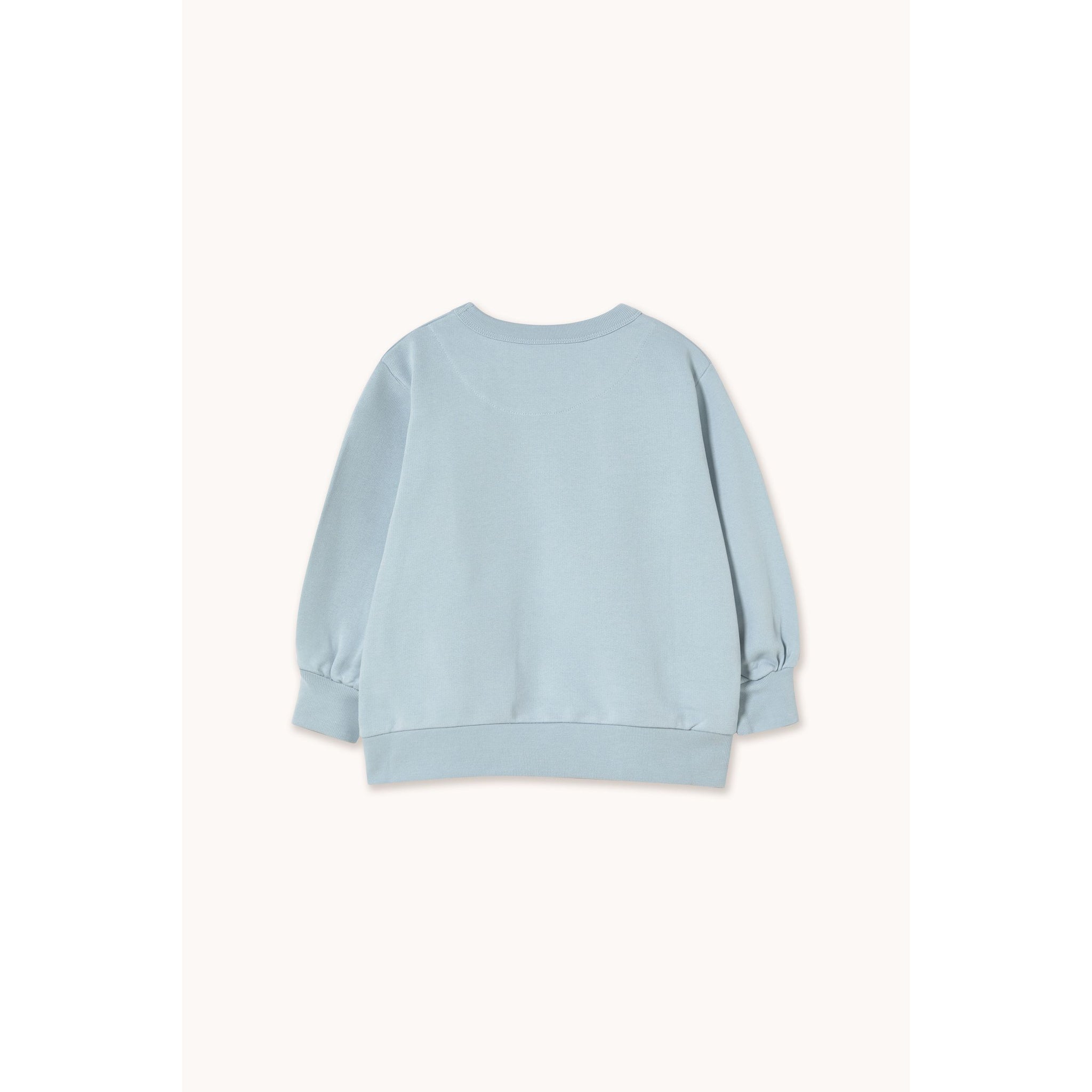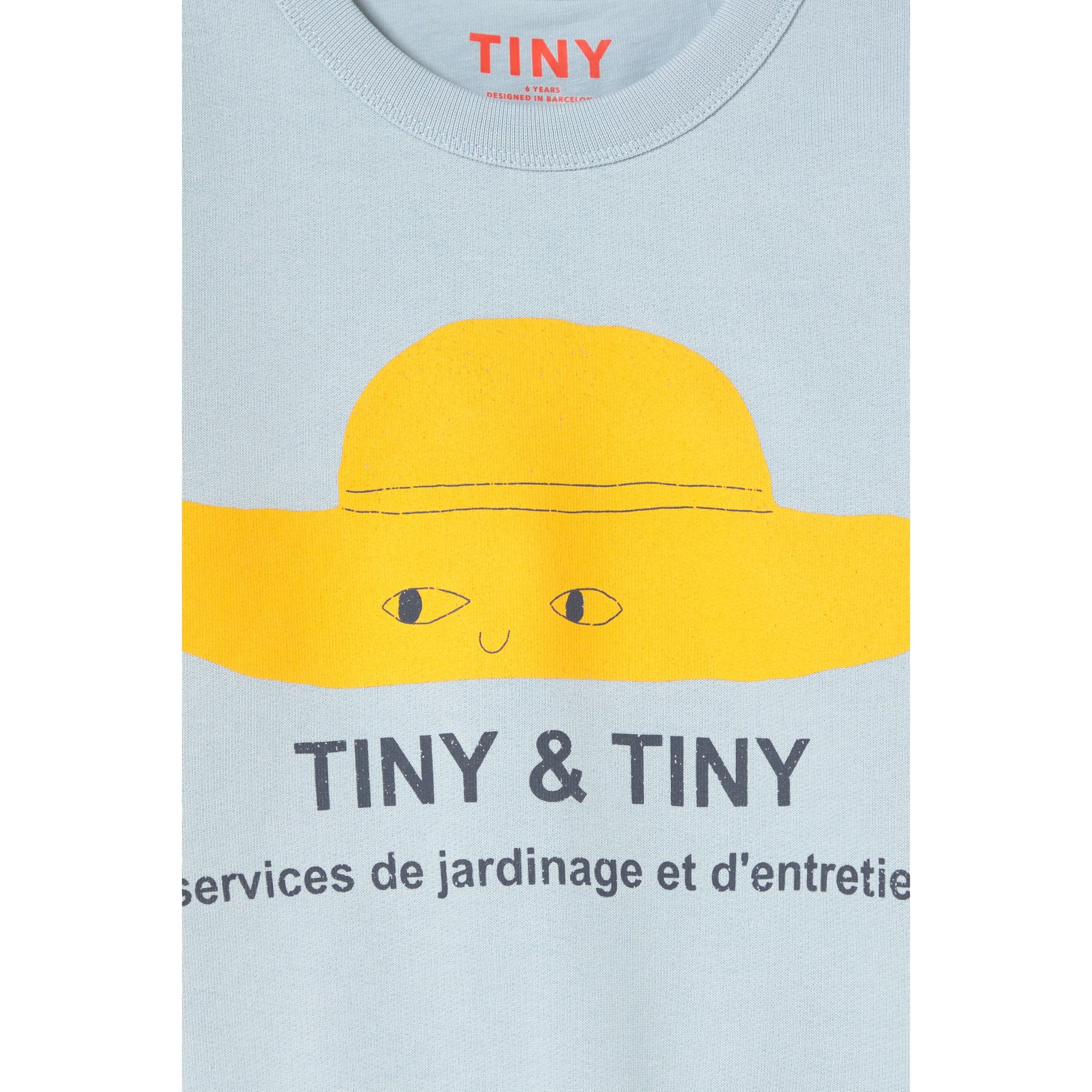 Tinycottons pale blue sweatshirt with cartoon hat print in yellow from the new SS26 collection 'Giverny'